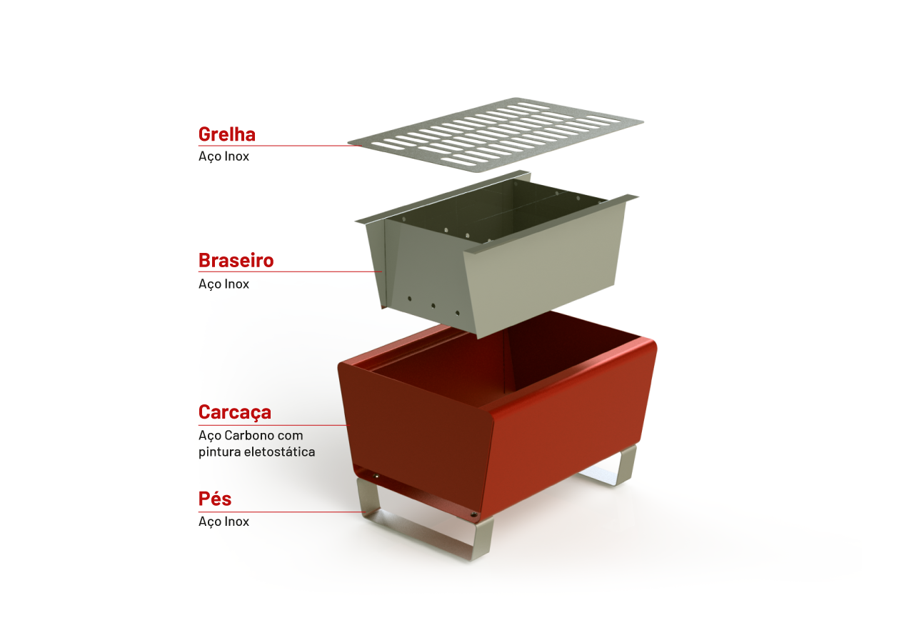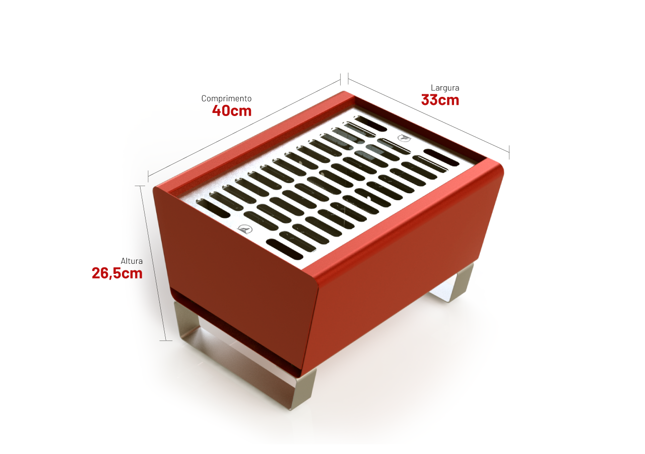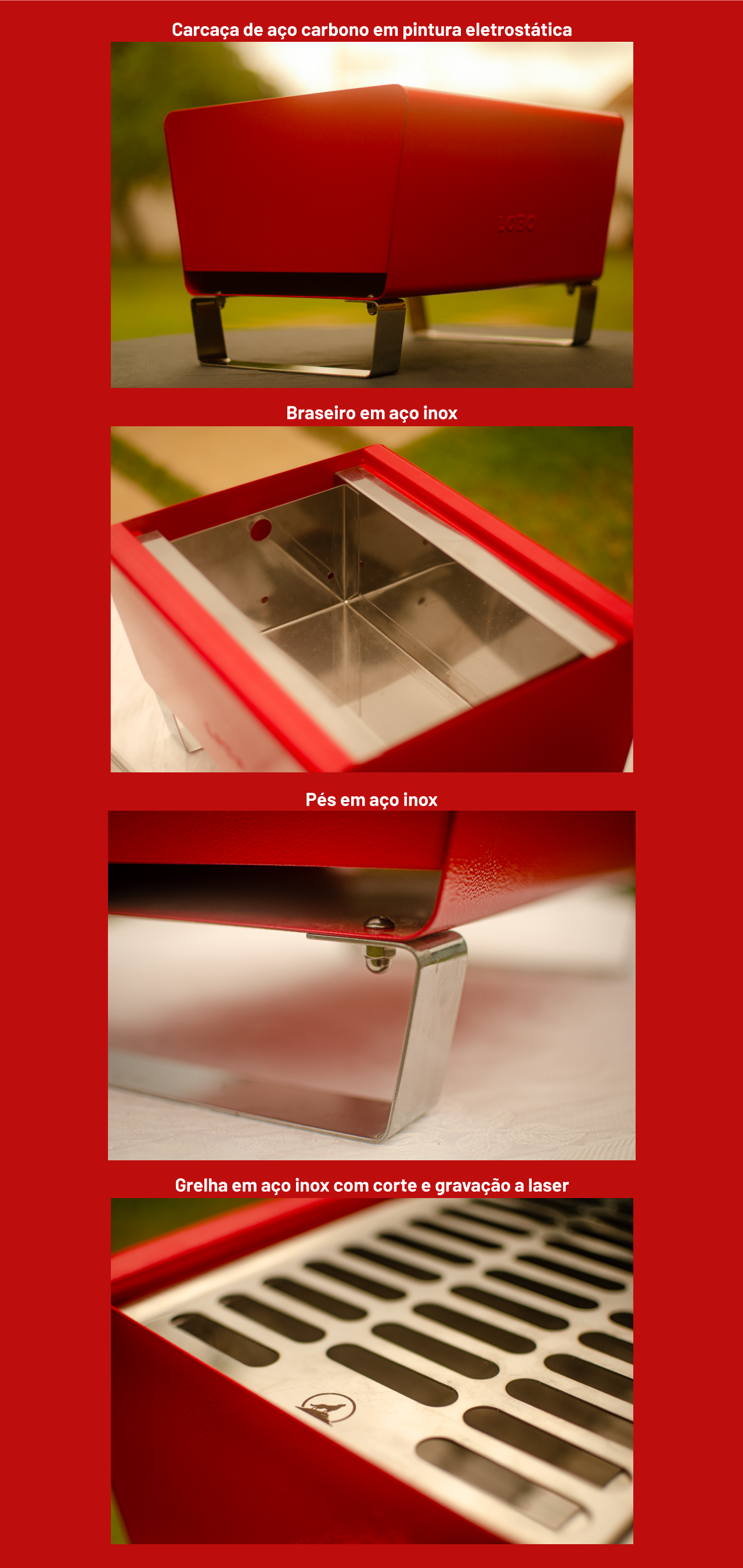 Portátil, prática e compacta, ela é fácil de transportar e perfeita para quem busca conveniência sem abrir mão do sabor. Com pintura eletrostática na vibrante cor vermelha, conta com braseiro e grelha removíveis em aço inox — garantindo durabilidade, resistência ao calor e facilidade na hora da limpeza.