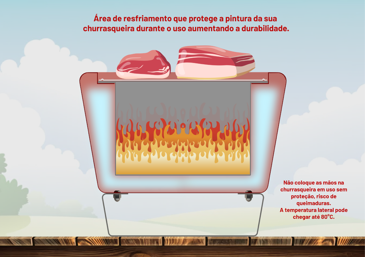 Linda, funcional e feita para te acompanhar em qualquer lugar, essa churrasqueira transforma qualquer momento em um verdadeiro churrasco.